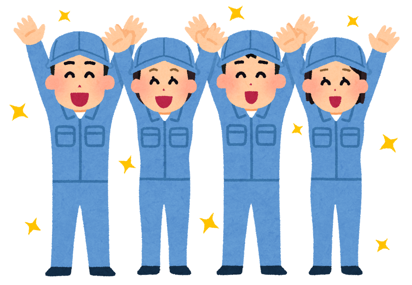 バンザイをしている作業員たちのイラスト かわいいフリー素材集 いらすとや